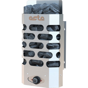 Электрическая каменка СТЭН ЭКМ Octa wall мощностью 3 и 4 кВт, со встроенным пультом управления (далее по тексту - электрокаменки) предназначены для нагрева воздуха и получения сухого пара в парильнях коммунальных бань и оздоровительных комплексах, а также для бань и саун индивидуального пользования. Электрокаменки настенного исполнения имеют прямоугольную форму с овальными вырезами на всей поверхности, что обеспечивает комфортные условия нагрева помещения и получения пара, как с верхней части электрокаменки, так и с боковой поверхности. Все детали электрокаменки выполнены из нержавеющей стали AISI 430. Класс защиты от поражения электрическим током -1.