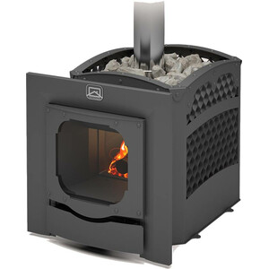 Большое количество качественно нагретых камней, обеспечивает стабильность температуры в парилке. Печь снабжена удобным ящиком зольника, который также является регулятором интенсивности горения. Колосник из литейного чугуна, являющийся элементом конструкции, обеспечивает равномерное устойчивое горение по всей длине топки.